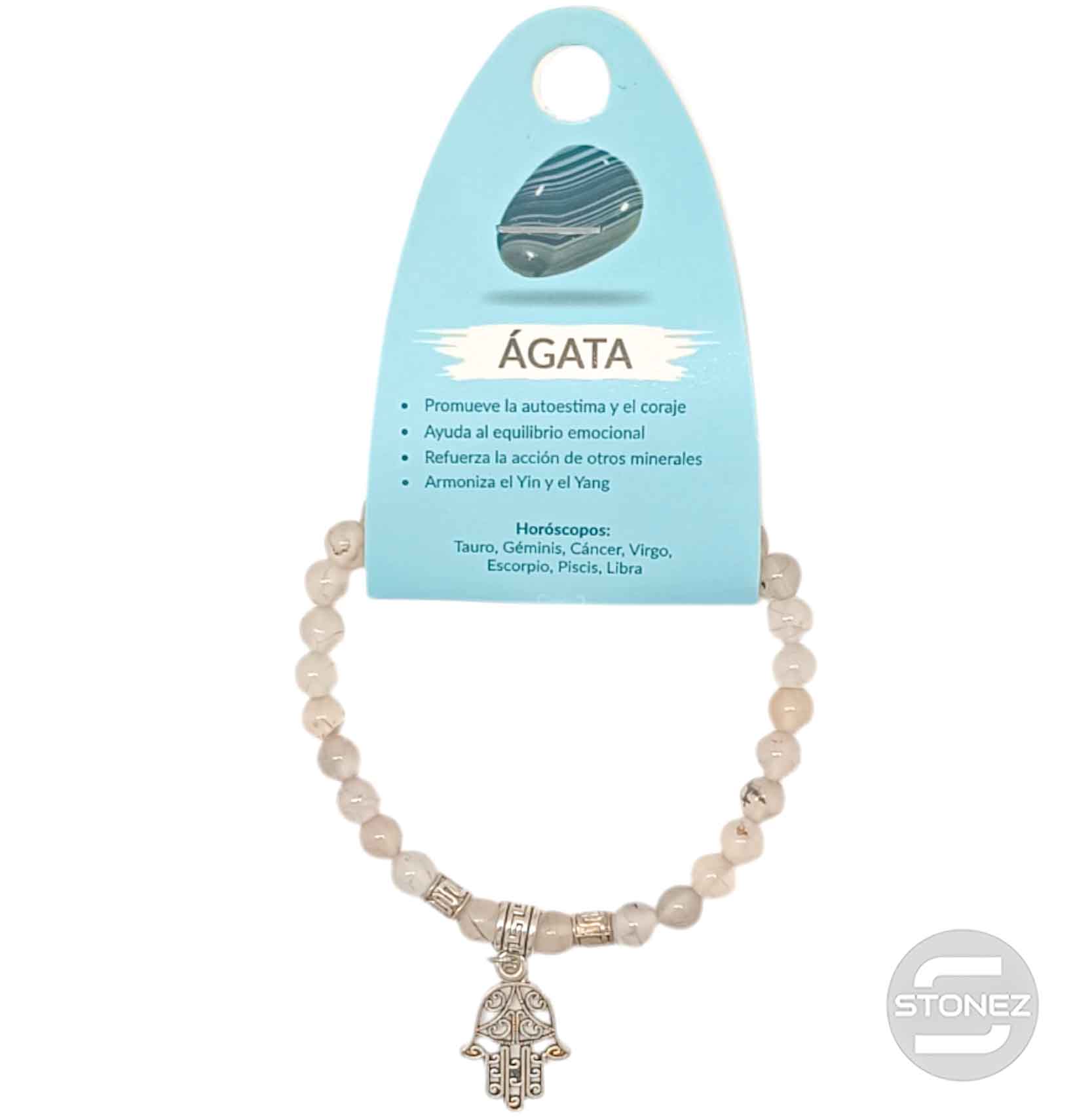 38042-58 Pulsera Agata Araña 6 mm Con Dije Metal Mano De Fatima