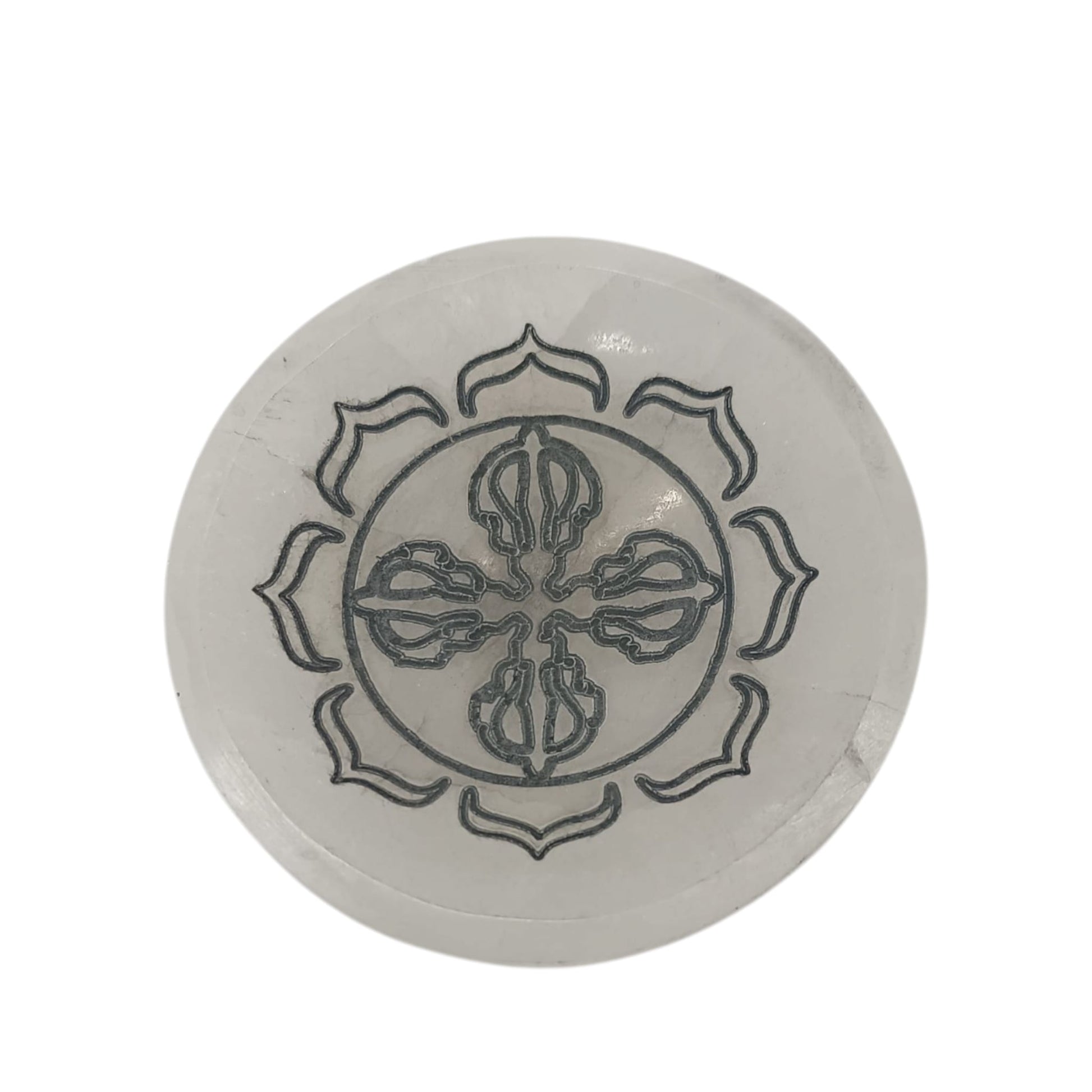 400901654 Cuenco Selenita Grabado Vajra 10 Cms Aprox