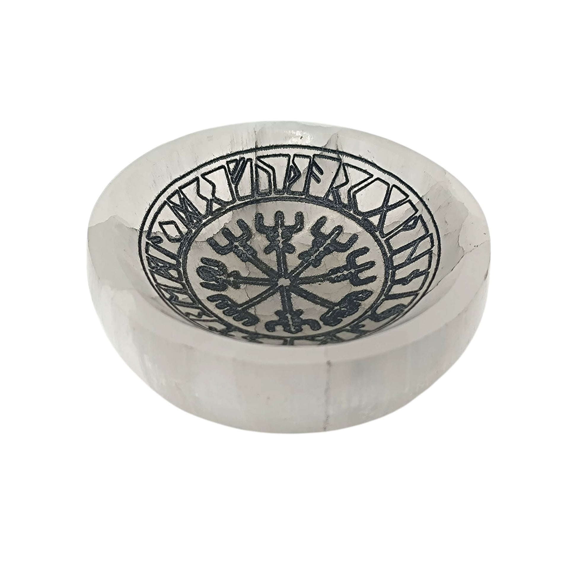 400901654 Cuenco Selenita Grabado Vegvisir 10 Cms Aprox