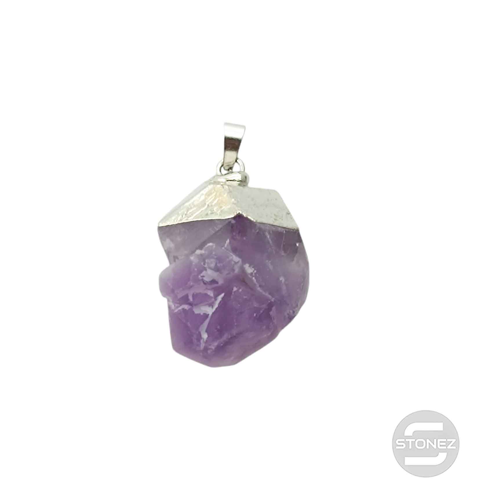 Colgante Piedra Natural Amatista Engarzado Con Baño Metal 3 Cms Aprox (El tamaño y Forma puede ser ligeramente diferente a la foto)