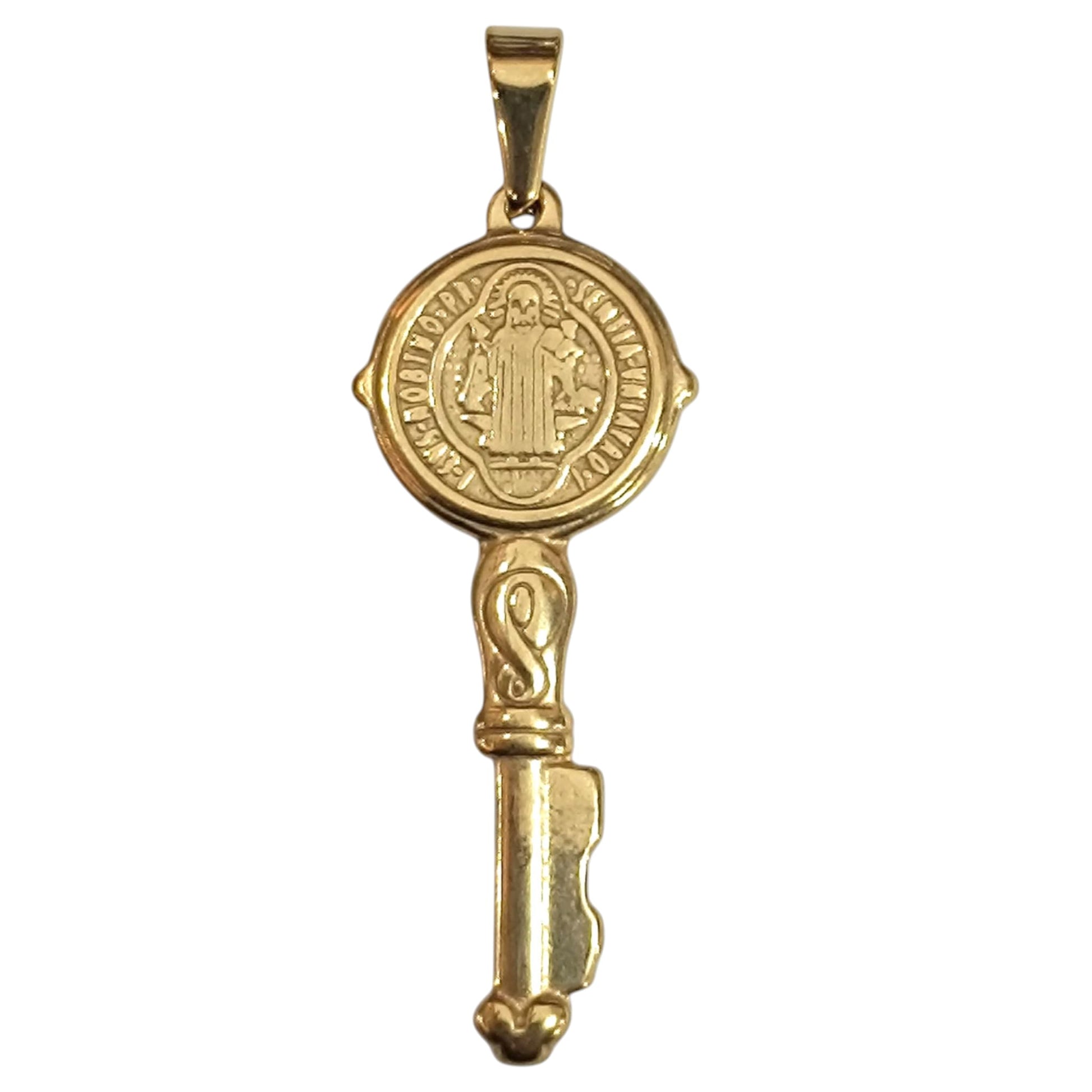 6001034132-01 Colgante Acero Dorado Llave San Benito 50 mm