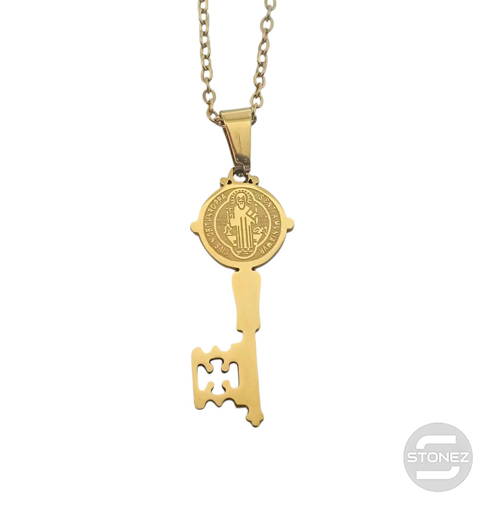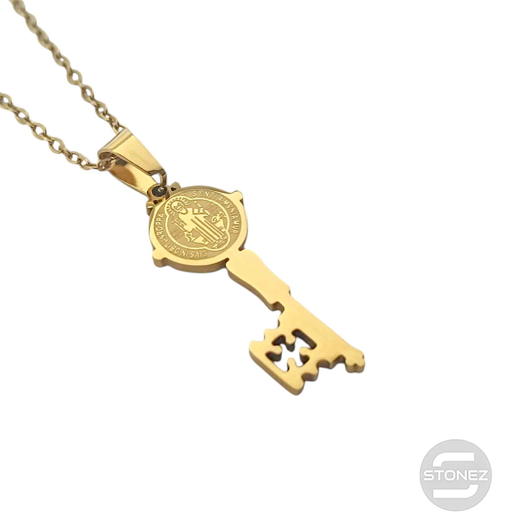 600103997 Collar Acero Dorado Llave San Benito 30 mm Cadena 42+5 Cms