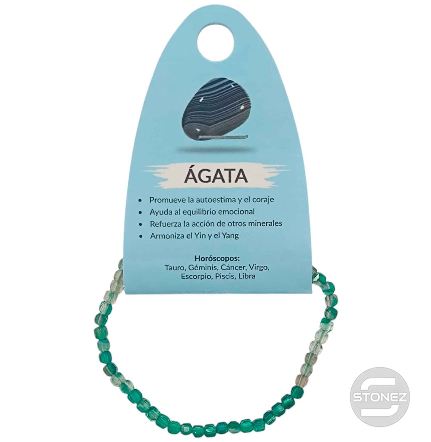 600603223 Pulsera Facetada Agata Verde Cubo 4x4 mm