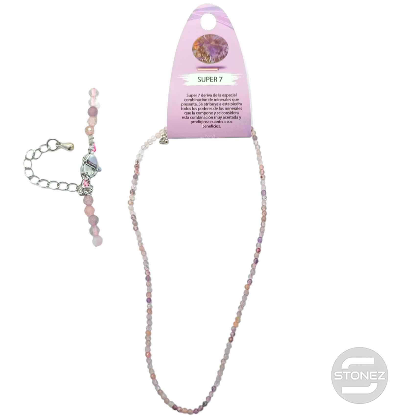 Collar Piedra Super Siete 3 mm Facetada 40+5 Cms Cierre Acero