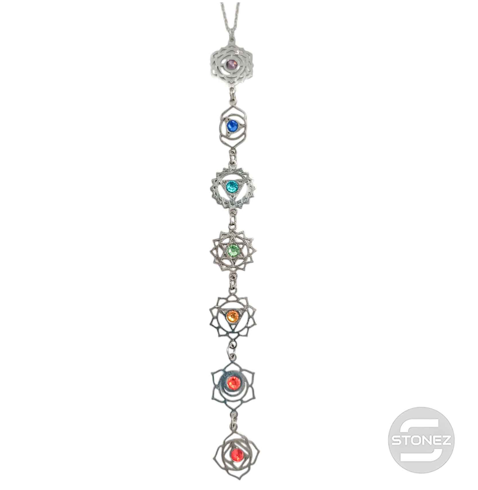 Collar Acero Simbolos 7 Chakras Y Cristal Cadena 40+5 Cms