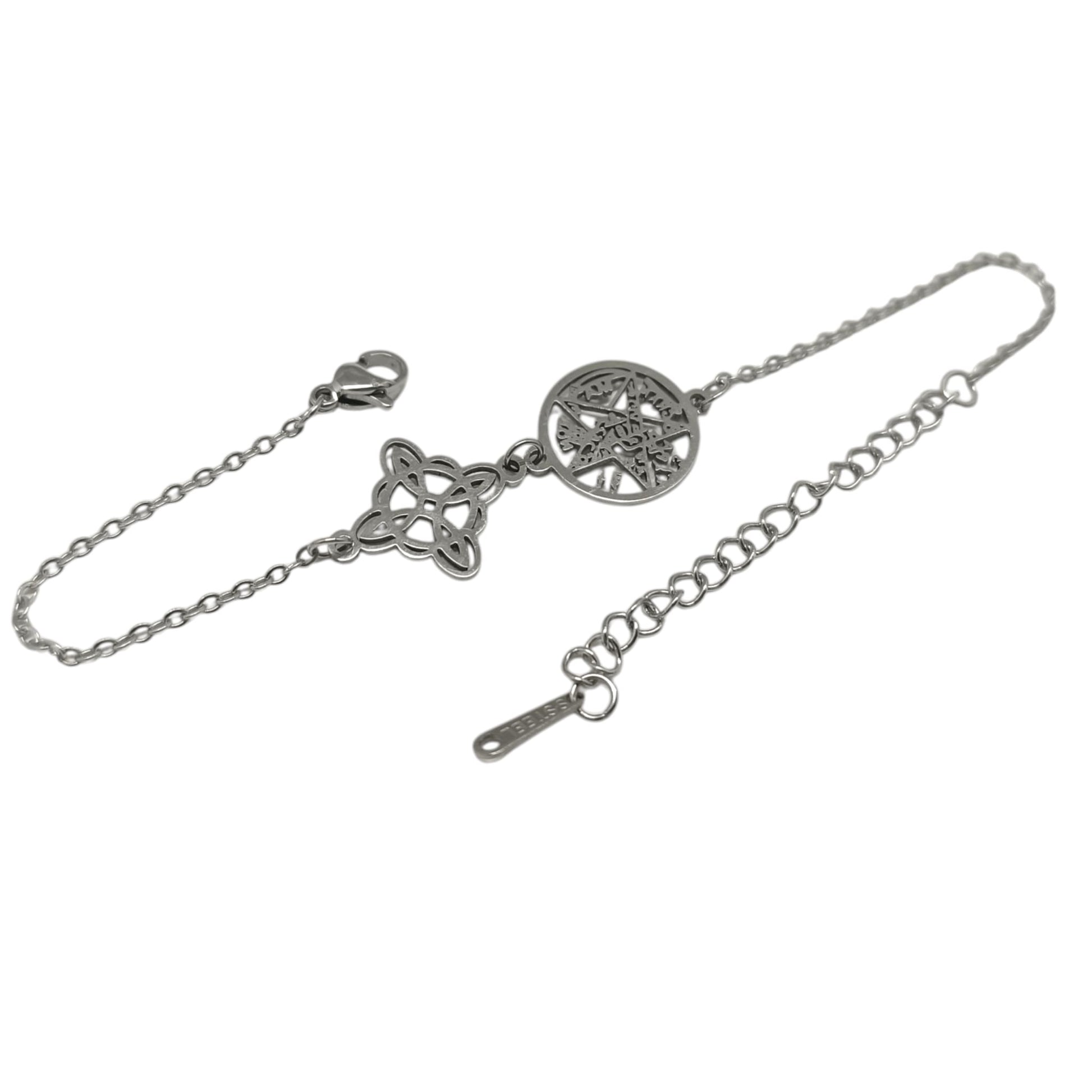 Pulsera Acero Doble Proteccion Con Dije Nudo De Bruja Tetragramaton
