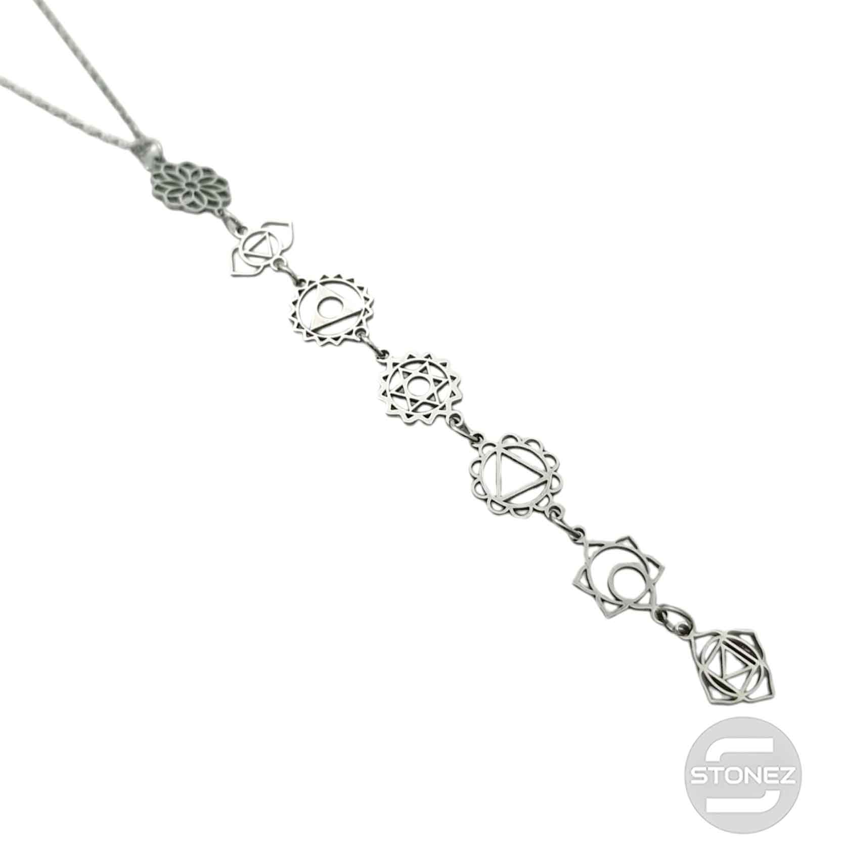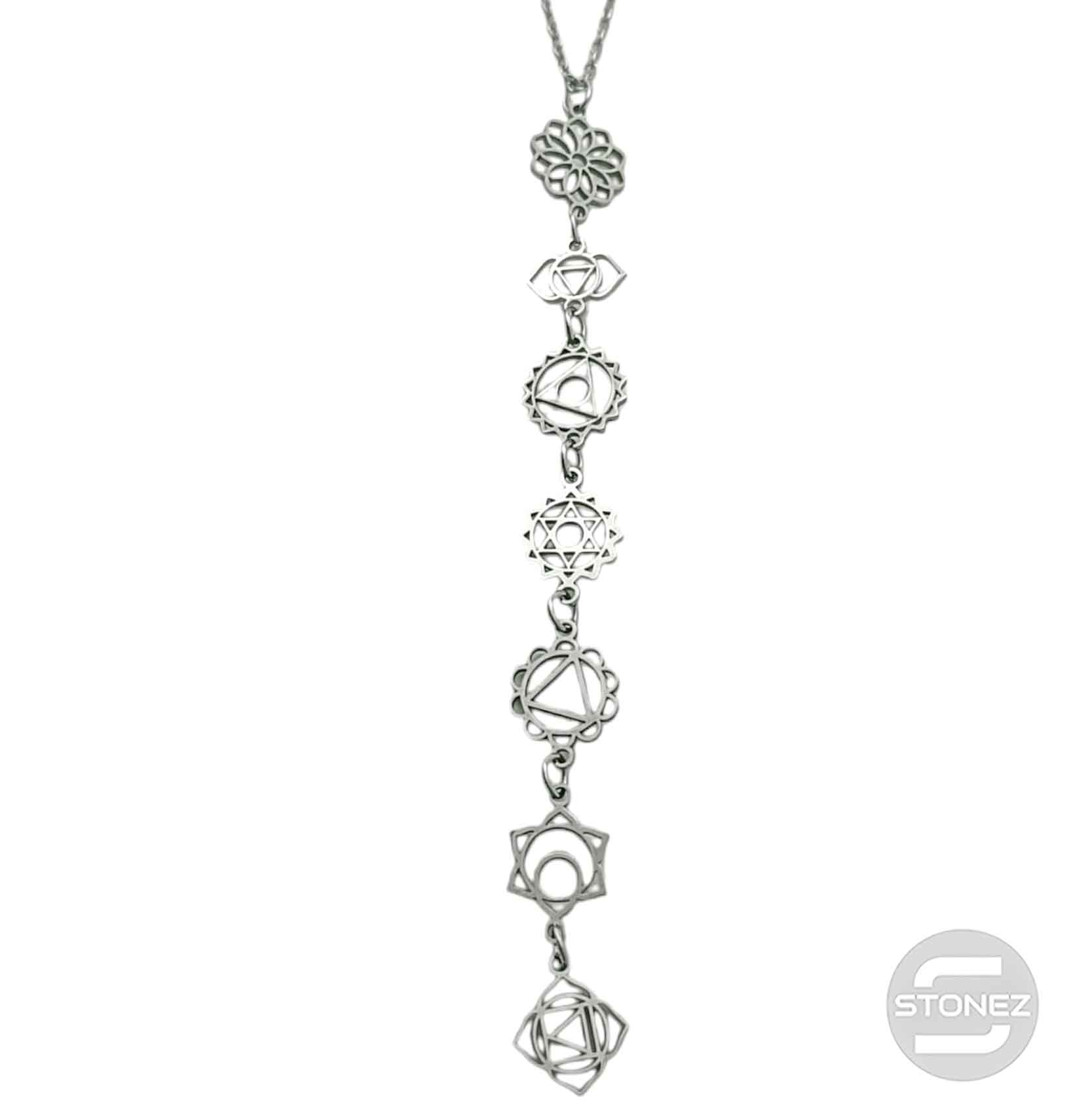 Collar Acero Simbolos 7 Chakras Cadena 42+5 Cms