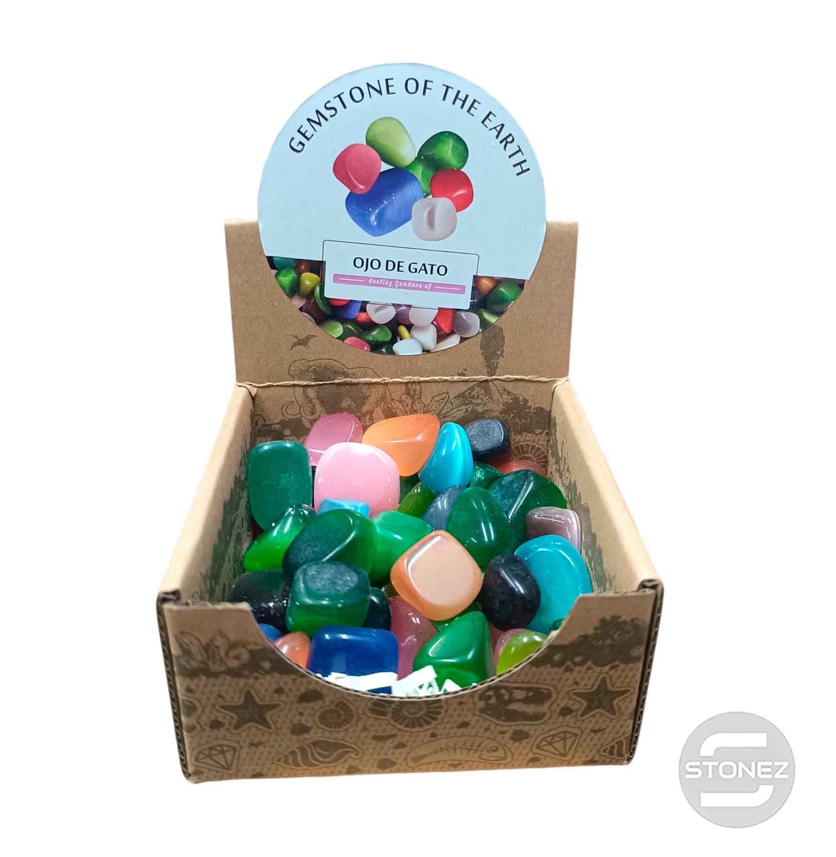 Caja Canto Rodado OJO DE GATO MULTI 500 gramos Tamaños Surtido Desde 2 Hasta 3 cms Aprox) El total de las piezas puede Variar