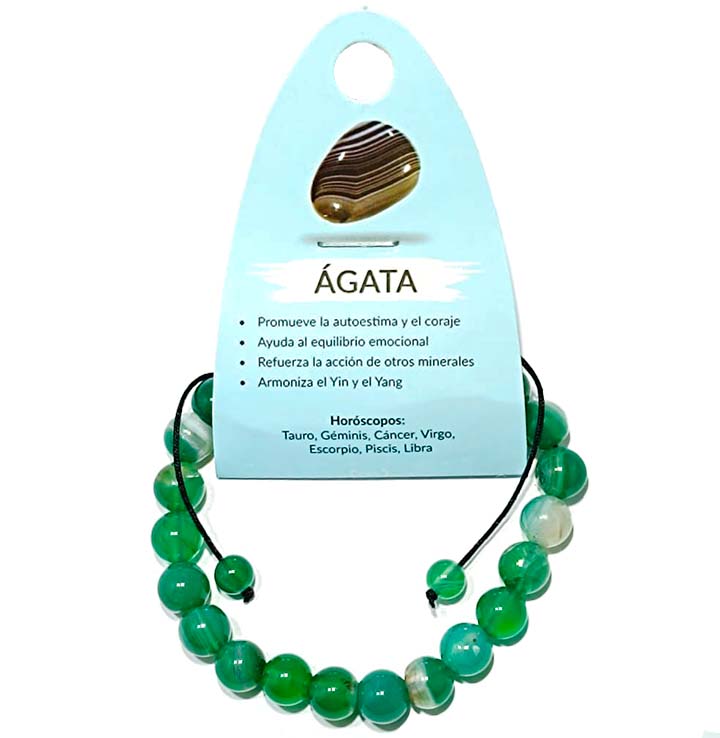 60920-90 Pulsera Ágata Verde Macramé Adaptable 8 mm