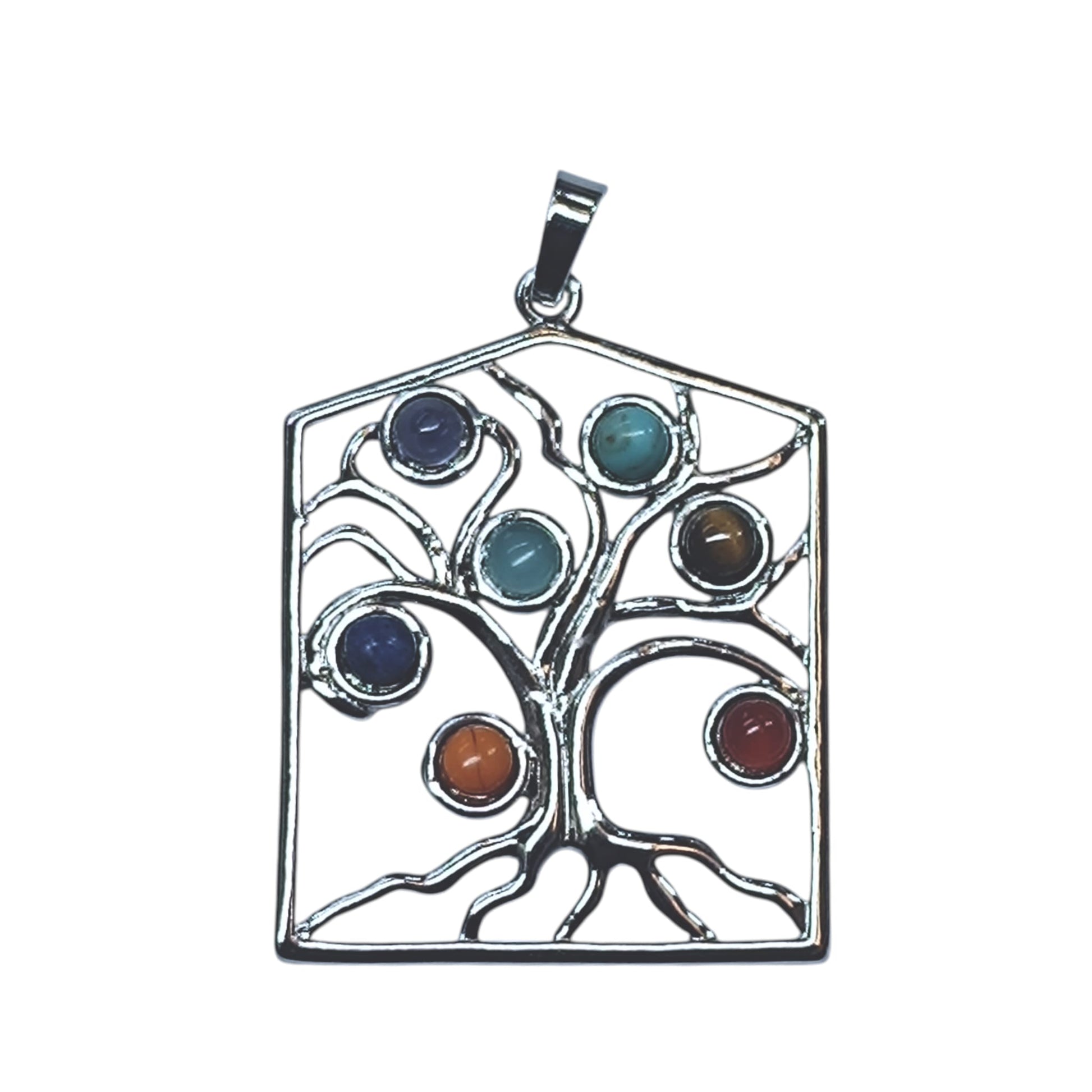 Colgante Arbol De La Vida En Metal Con Piedra Natural 7 Chakras 4 Cms Aprox 23004-41
