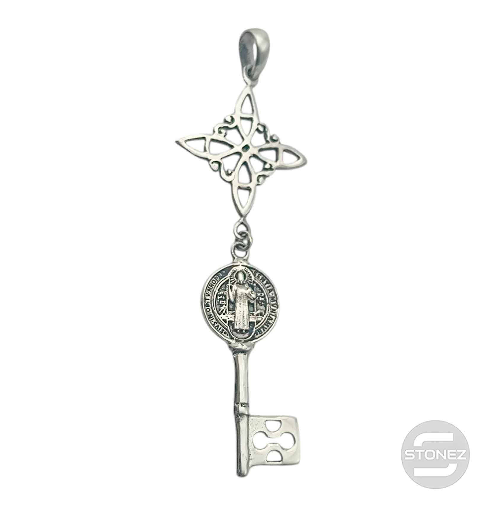 Colgante En Plata 925 Nudo De Bruja Lave San Benito 55 mm Largo Aporx