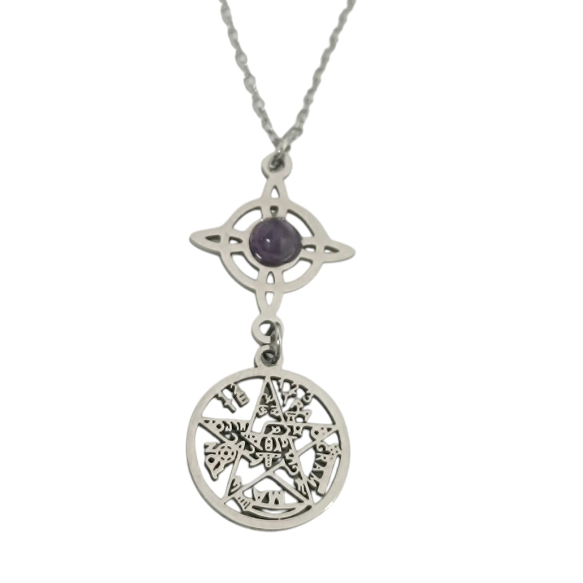 Collar Acero Doble Proteccion Con Piedra Amatista Cadena 40+5 Cms 400603911-05