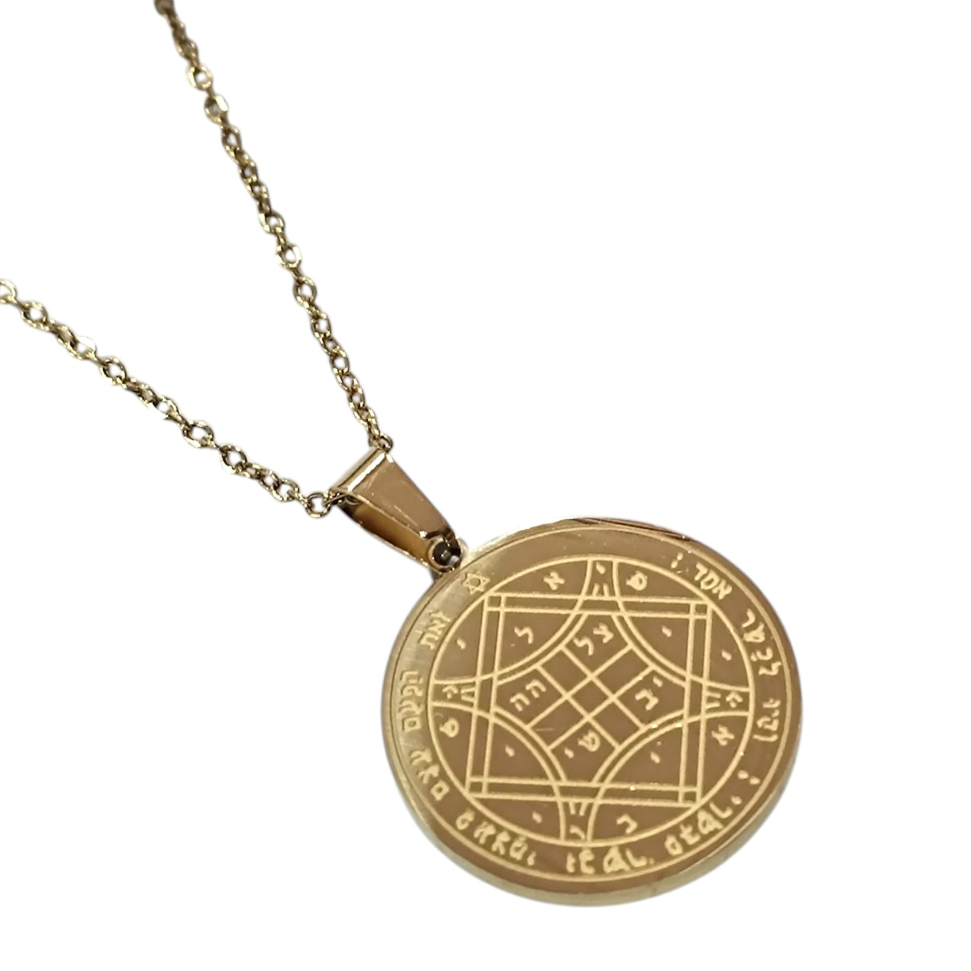 Collar Acero Dorado Sello Salomon 25 mm Cadena 40+5 Cms