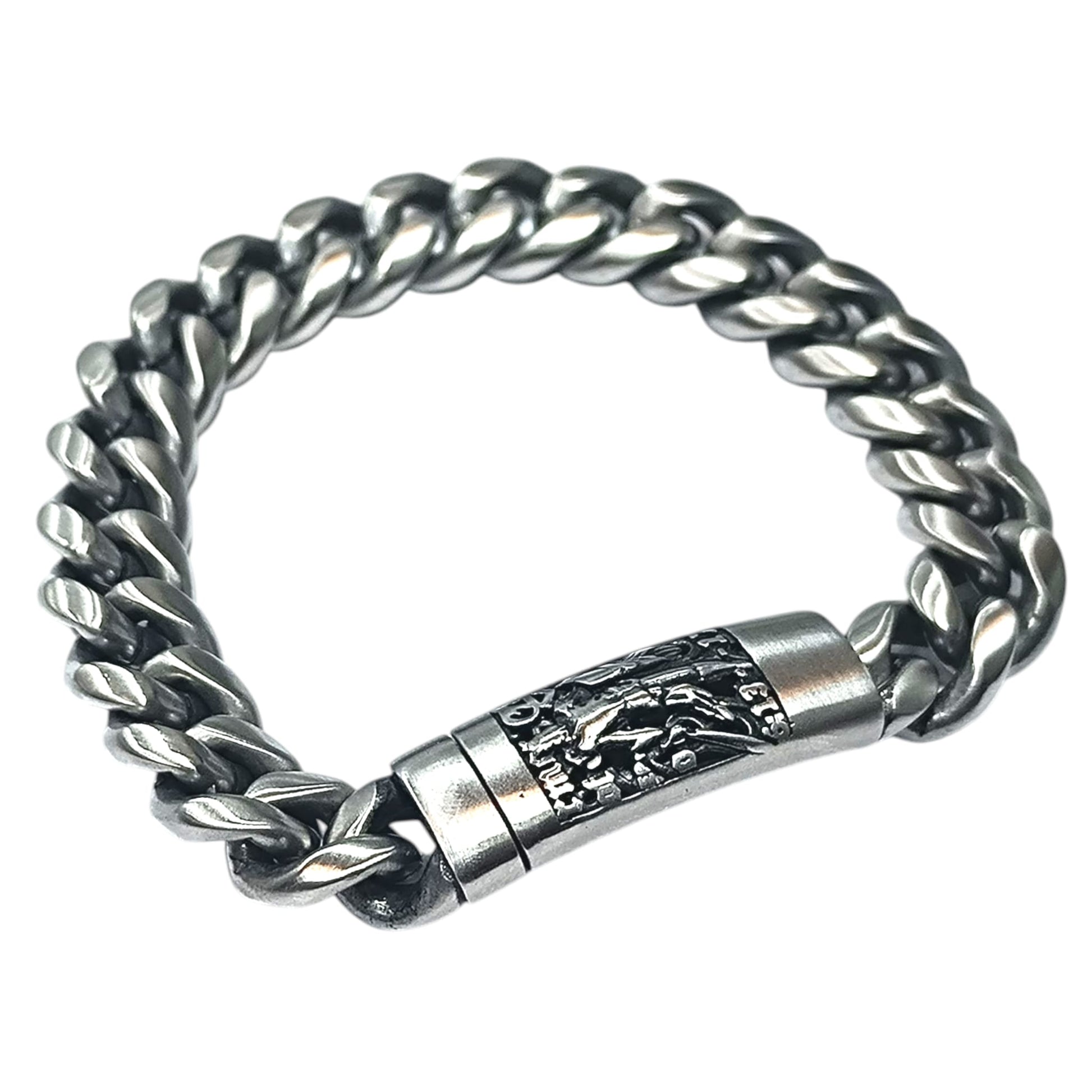 Pulsera Acero 21 Cms Cierre Grabrado Guerrero